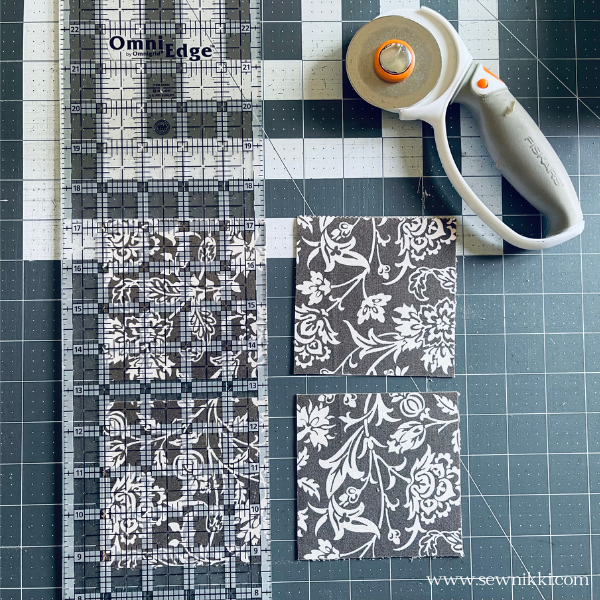 - Fabric: Choose a variety of fabrics for your squares. You will need 4 – 5″ charm pack prints and or 1 – 10″ layer cake. Trim to 4″ squares.