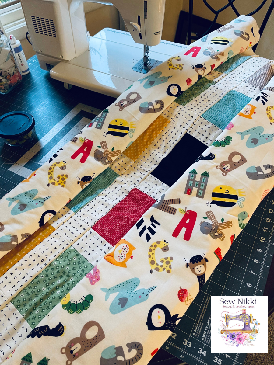 Whether you use solids, pastels, or bright prints, this quilt comes together quickly with beginner-friendly piecing and layout instructions. A great project for baby showers, nurseries, or early learning spaces!