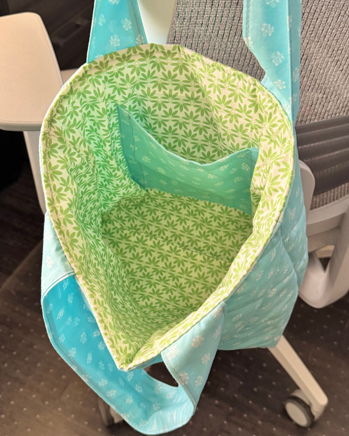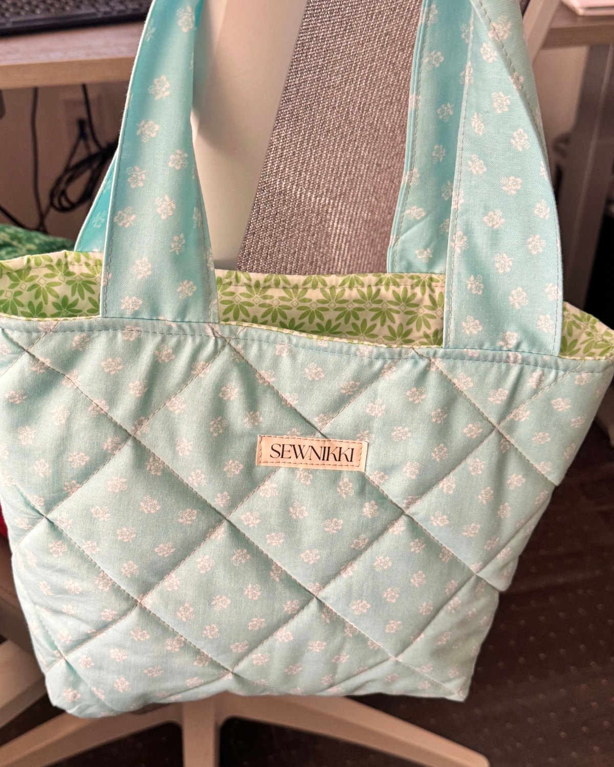 Features: Soft quilted structure, sturdy handles, lightweight feel