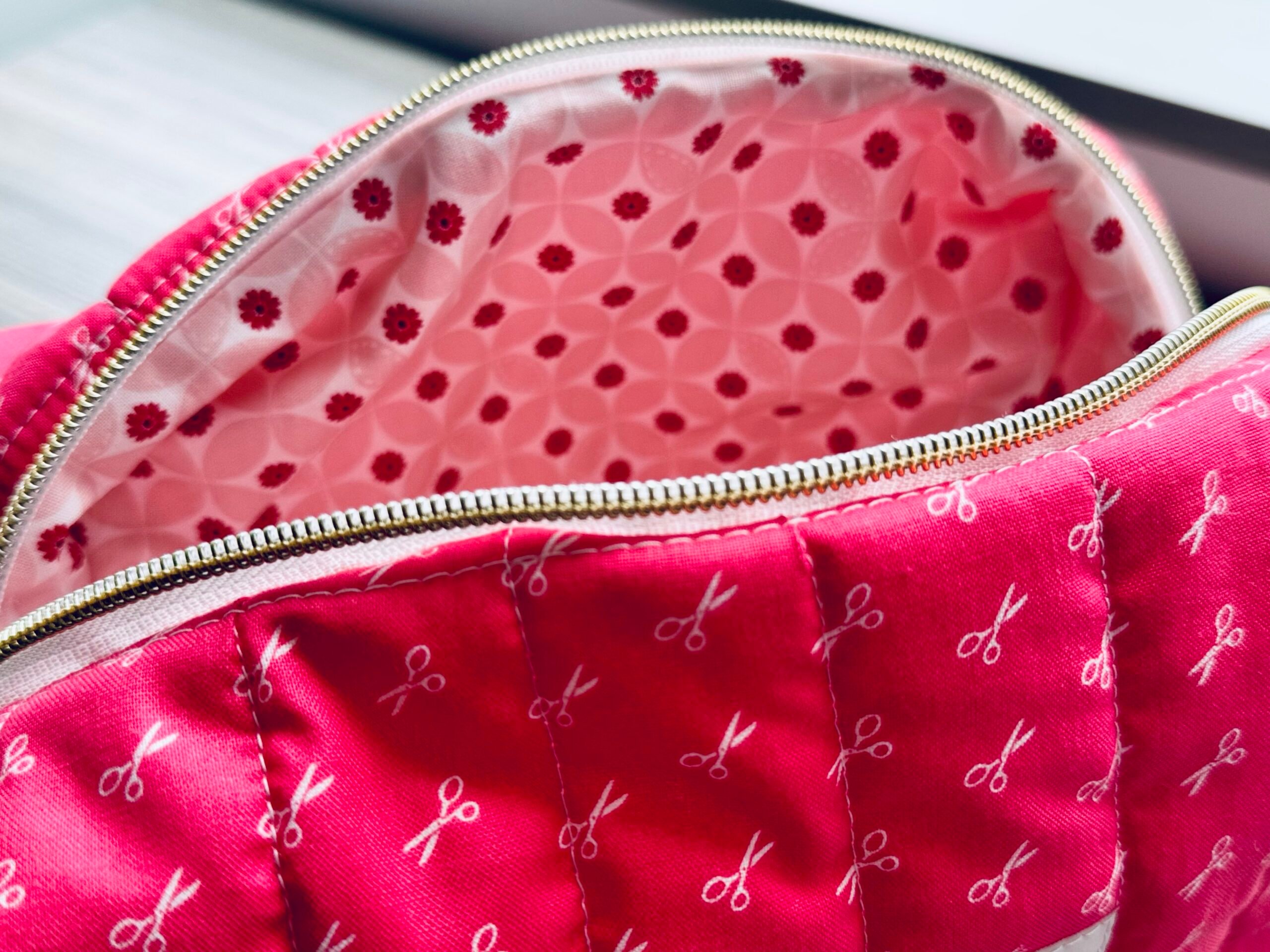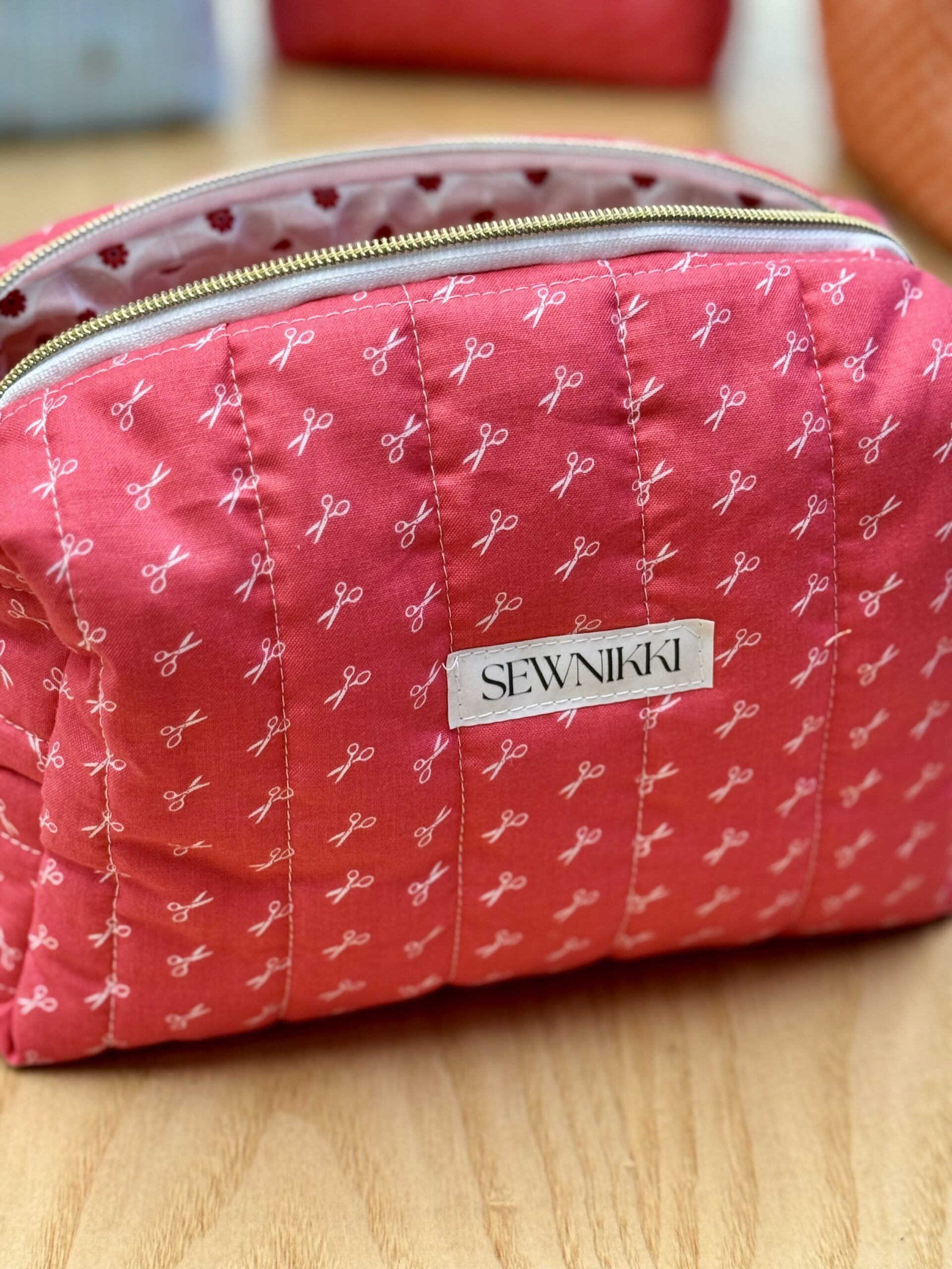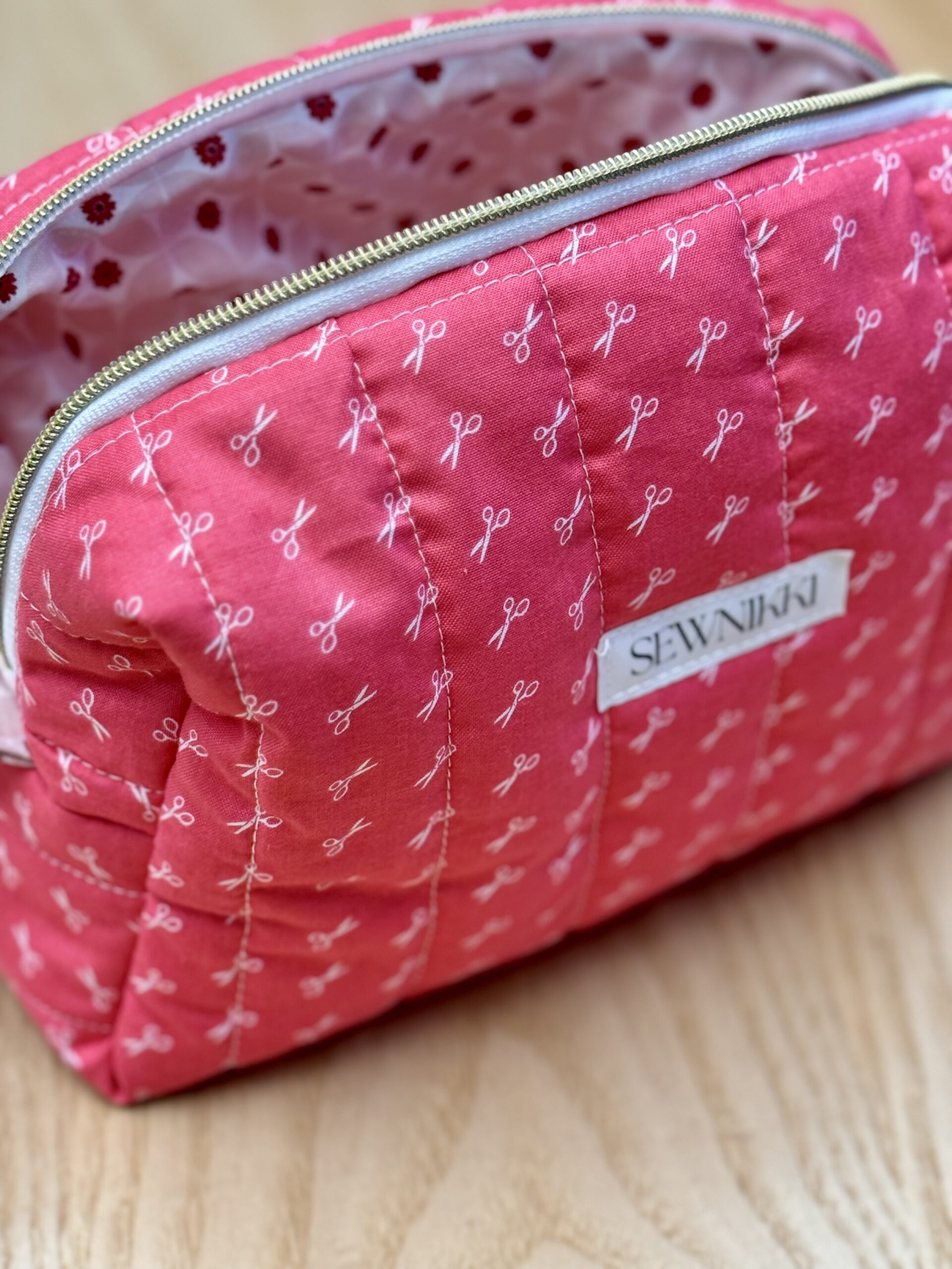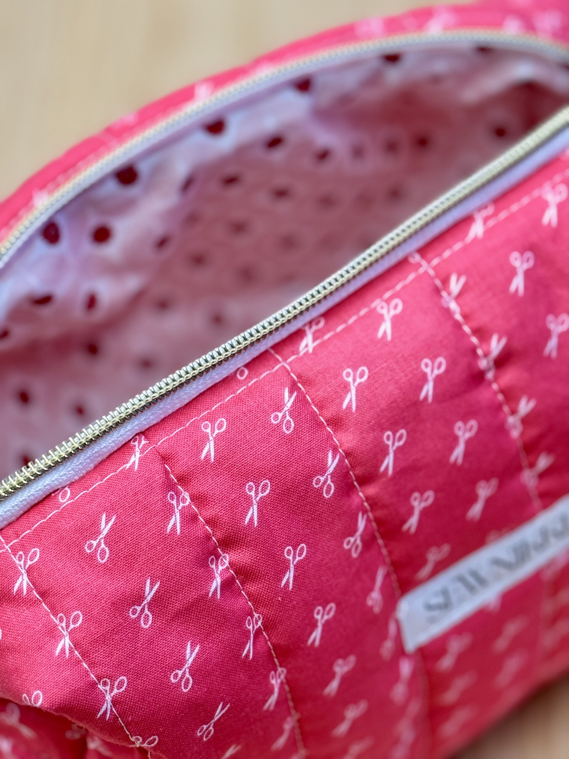 Bring a burst of pink to your routine with this Dark Pink Medium Quilted Makeup Bag. Made with 100% quality quilting cotton, this cheerful bag features a fun scissor print, machine quilted with fluffy batting for softness and structure.