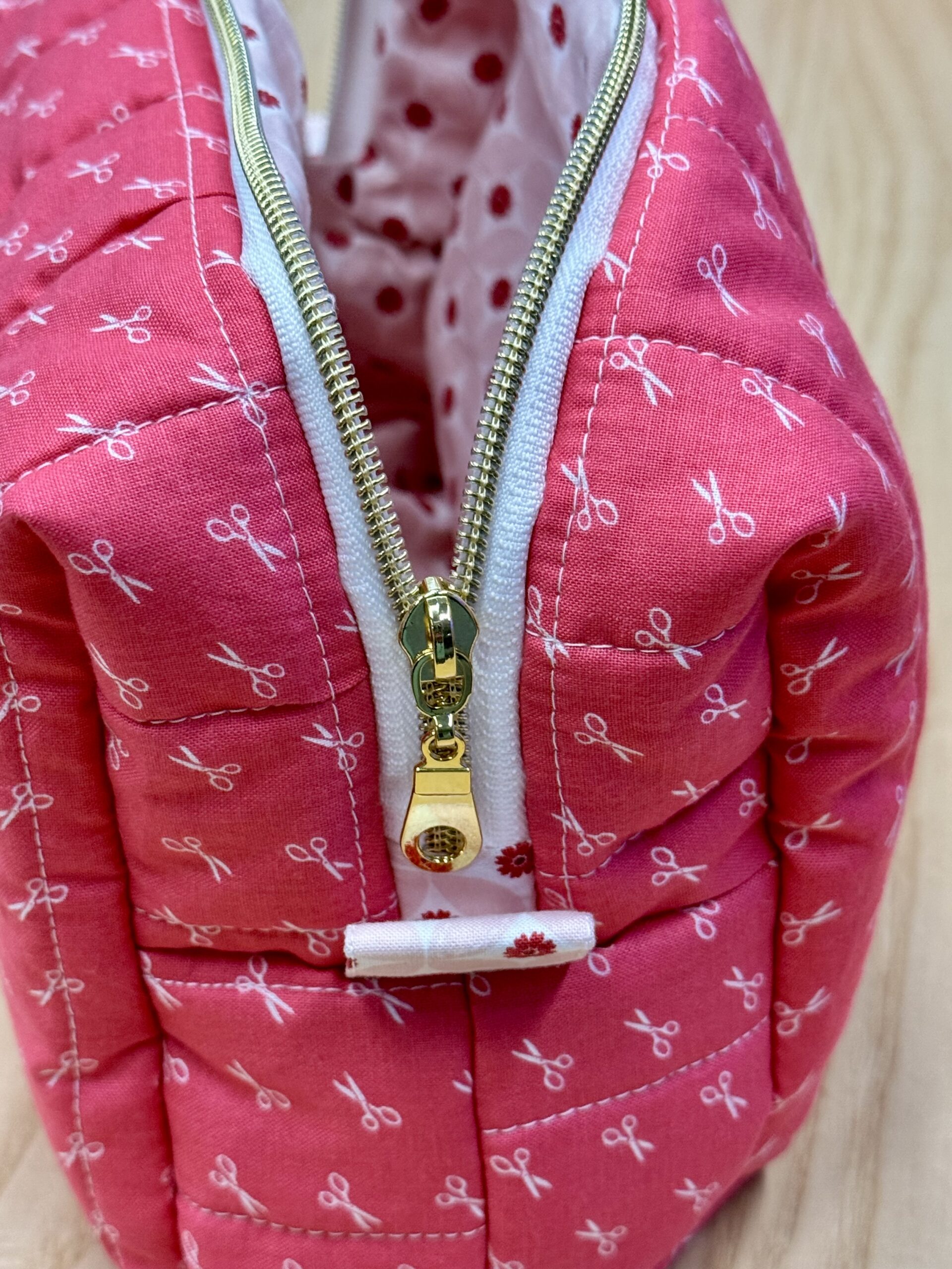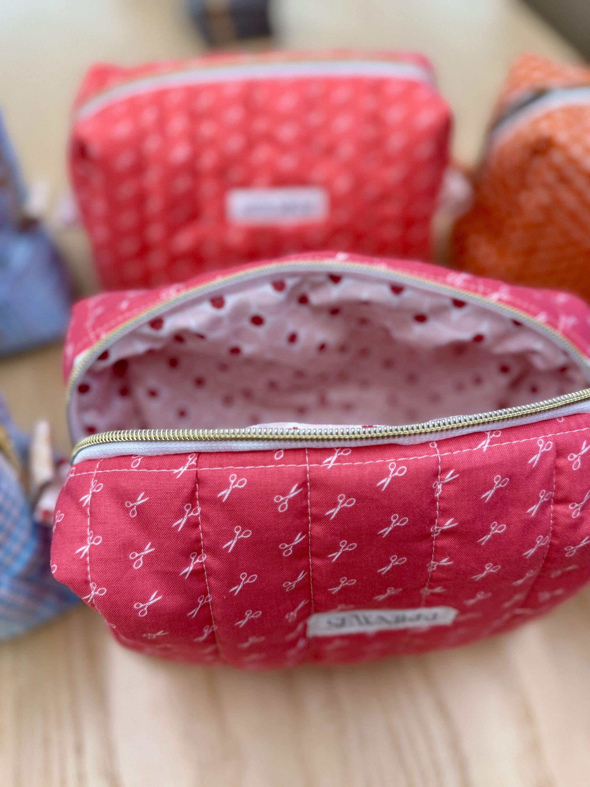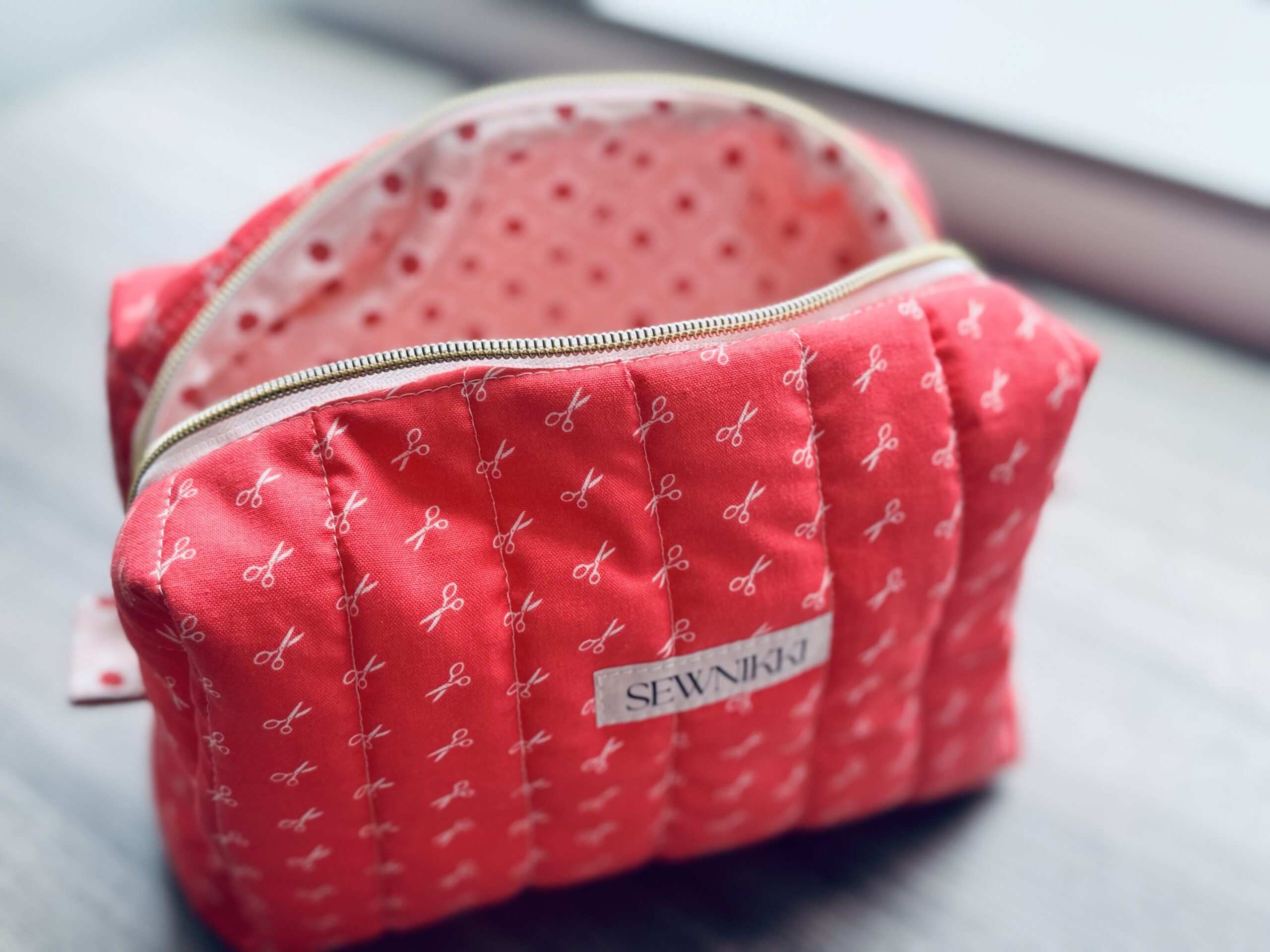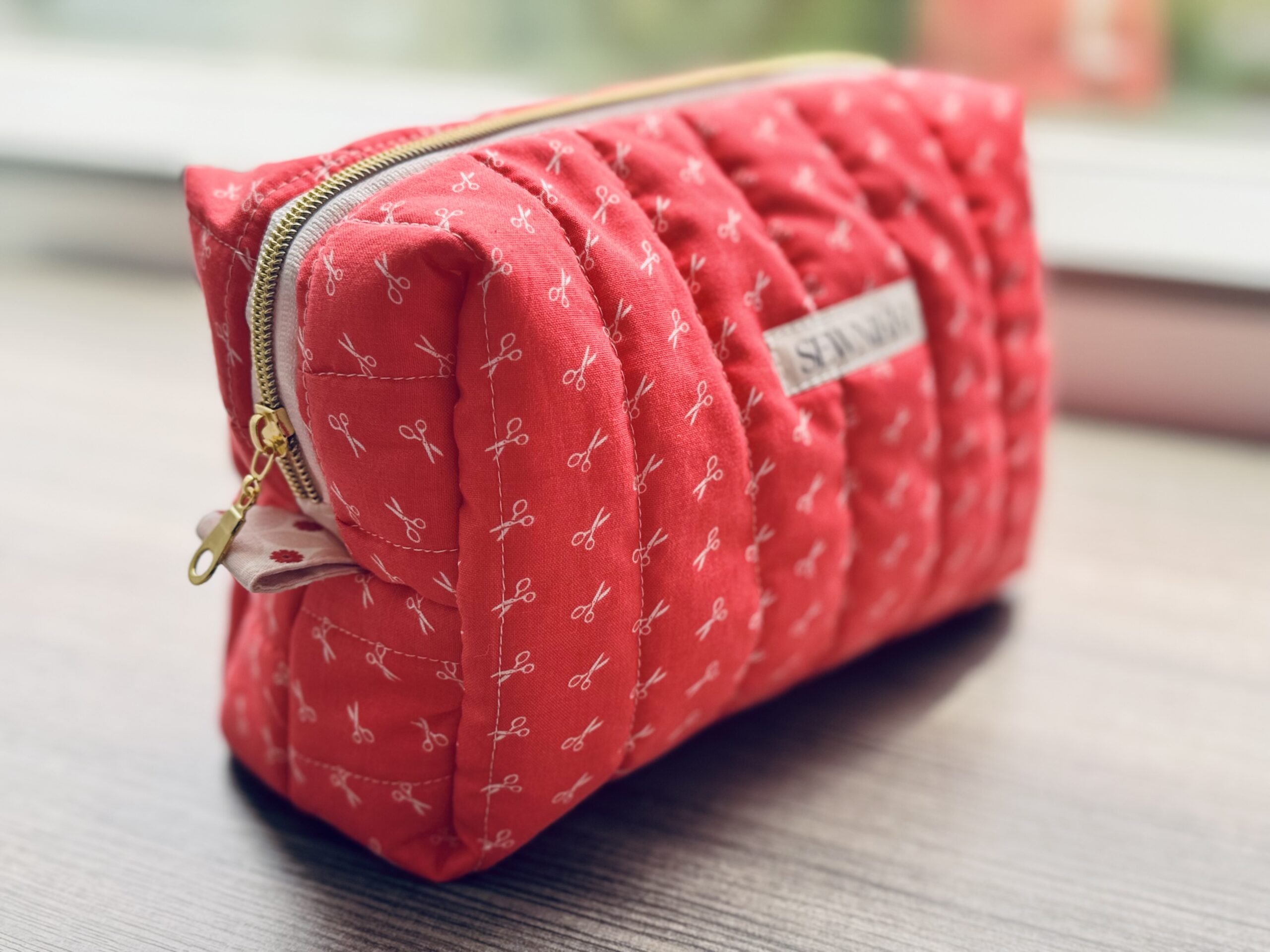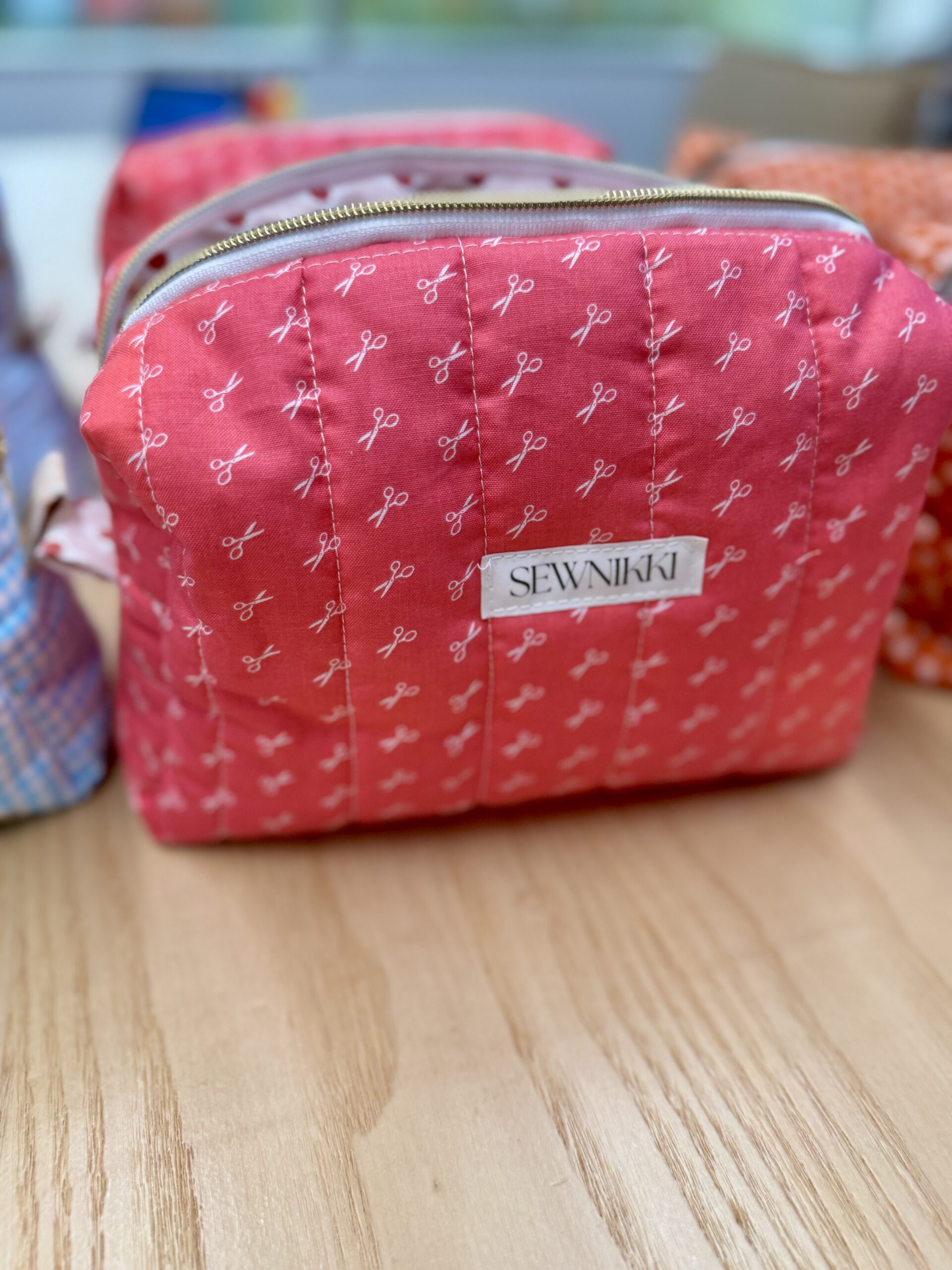 Bring a burst of pink to your routine with this Dark Pink Medium Quilted Makeup Bag. Made with 100% quality quilting cotton, this cheerful bag features a fun scissor print, machine quilted with fluffy batting for softness and structure.