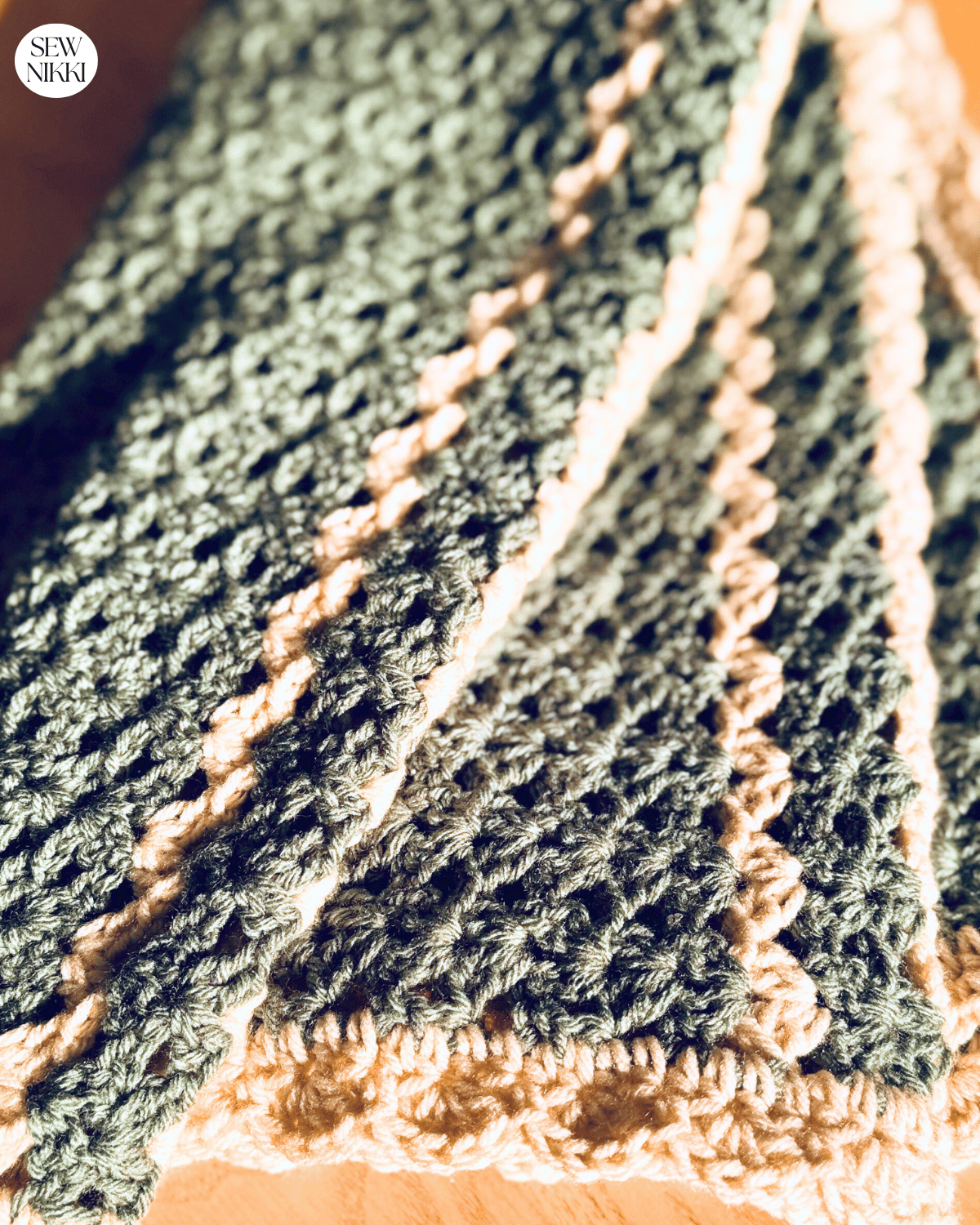 The pattern includes full written instructions, stitch abbreviations, and a sizing guide so you can adjust it to make any size blanket.