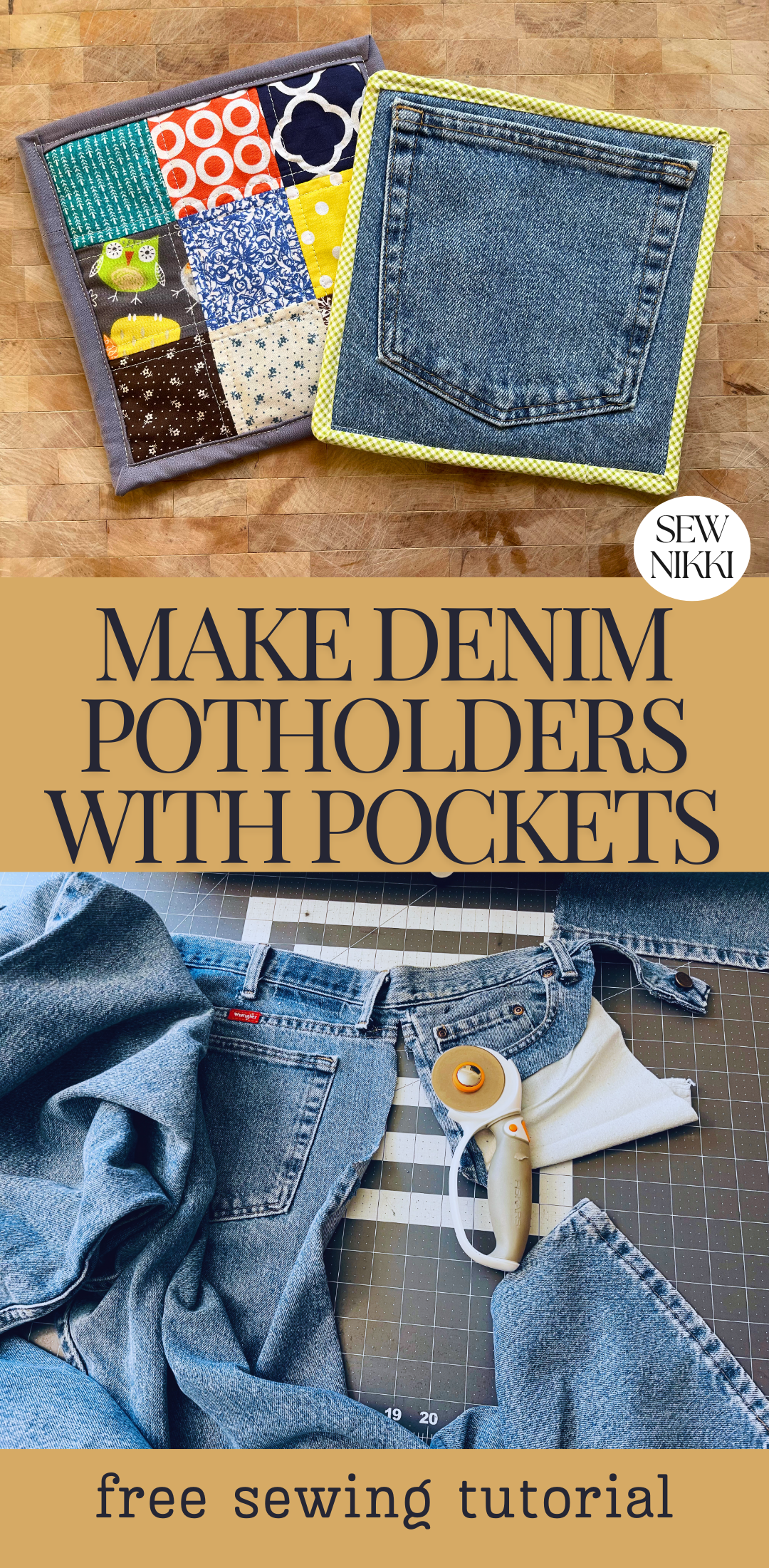Protect your hands in style with these denim Potholders with Pockets! This beginner-friendly sewing pattern walks you through creating functional, cute potholders that include built-in hand pockets for extra grip and comfort using recycled jeans. Perfect for your kitchen or as handmade gifts, these potholders are quick to sew and a great way to use up fabric scraps.